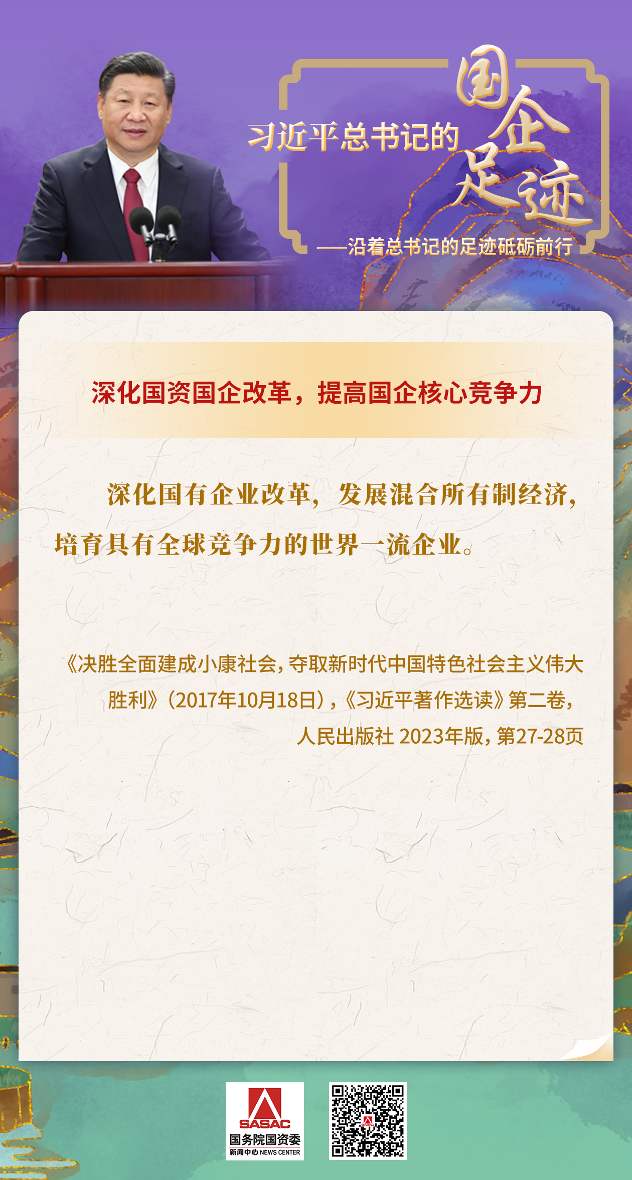 新中國(guó)成立75周年之際,國(guó)務(wù)院國(guó)資委網(wǎng)站推出了《習(xí)近平總書(shū)記的國(guó)企足跡—學(xué)習(xí)要義》系列專題海報(bào),指導(dǎo)國(guó)資國(guó)企深入學(xué)習(xí)、理解、掌握習(xí)近平同志關(guān)于發(fā)展國(guó)有經(jīng)濟(jì)的論述,自覺(jué)用習(xí)近平新時(shí)代中國(guó)特色社會(huì)主義思想武裝頭腦、指導(dǎo)實(shí)踐、推動(dòng)工作。