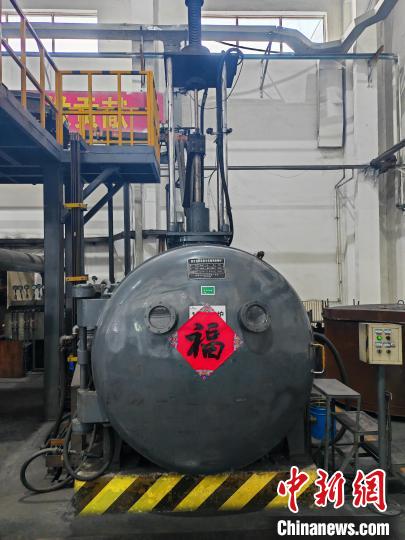 在沈鑄所生產車間內,一個貼著紅色“福”字的大型封閉罐格外醒目。