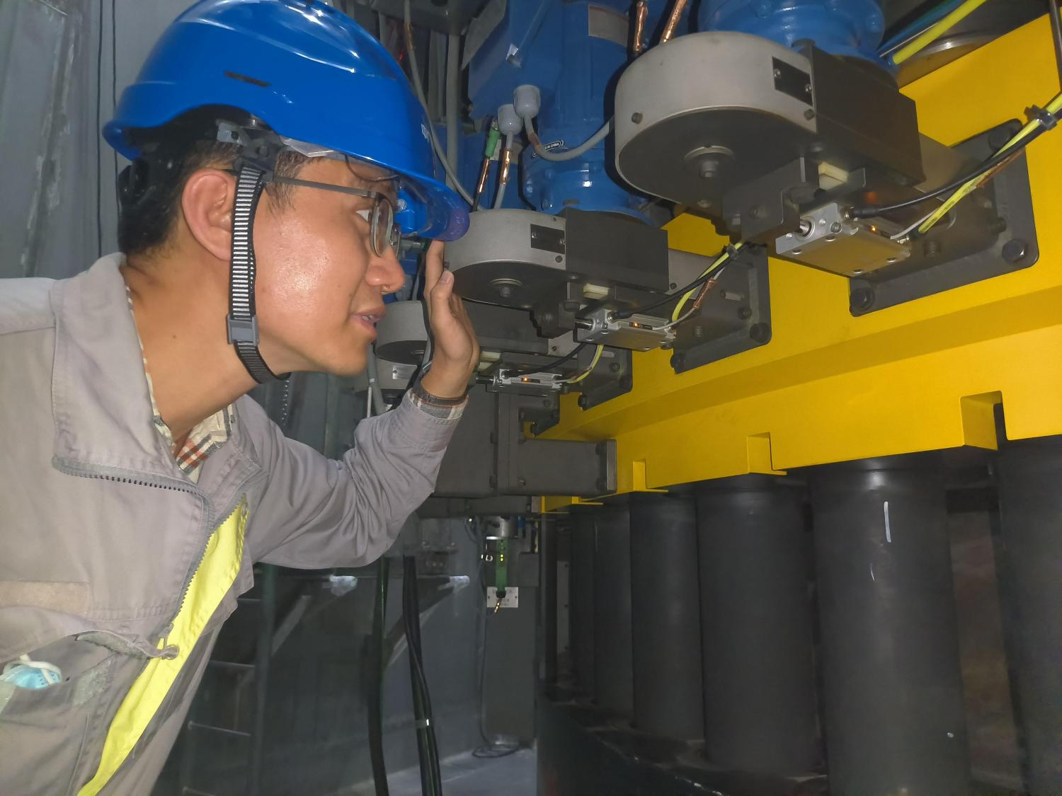 也是從這次“意外”開始,整體螺栓拉伸機自主化攻堅小組正式成立。沒人帶路,就自己摸索;沒有完整的經驗傳承,就一點點積累。經過幾年不懈精進,胡建強和他帶領的自主化攻堅小組不僅完全掌握了螺栓拉伸機的操作,更整理出了數千項備件清單,建立了數十份操作規范和應急預案,從零搭建起了一套整體螺栓拉伸機的自主維修體系。在此基礎上,胡建強乘勝追擊,繼續推動了多基地整體螺栓拉伸機的自主化改造和國產替代。隨著多基地多機組的逐步投運,更大的工作量,更復雜的設備機型給胡建強帶來了更多挑戰,卻也讓他進一步加深了對整體螺栓拉伸機運維的認識。
