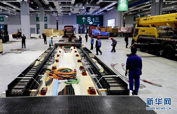 來自德國的首屆進口博覽會最大展品——“金牛座”龍門銑床完成初步組裝,將運往國家會展中心(上海)3號館進行最后的安裝施工。這是德國瓦德里??票す狙邪l的機床設備,高約8米,占地面積約200平方米,將在智能及高端裝備區進行展出。